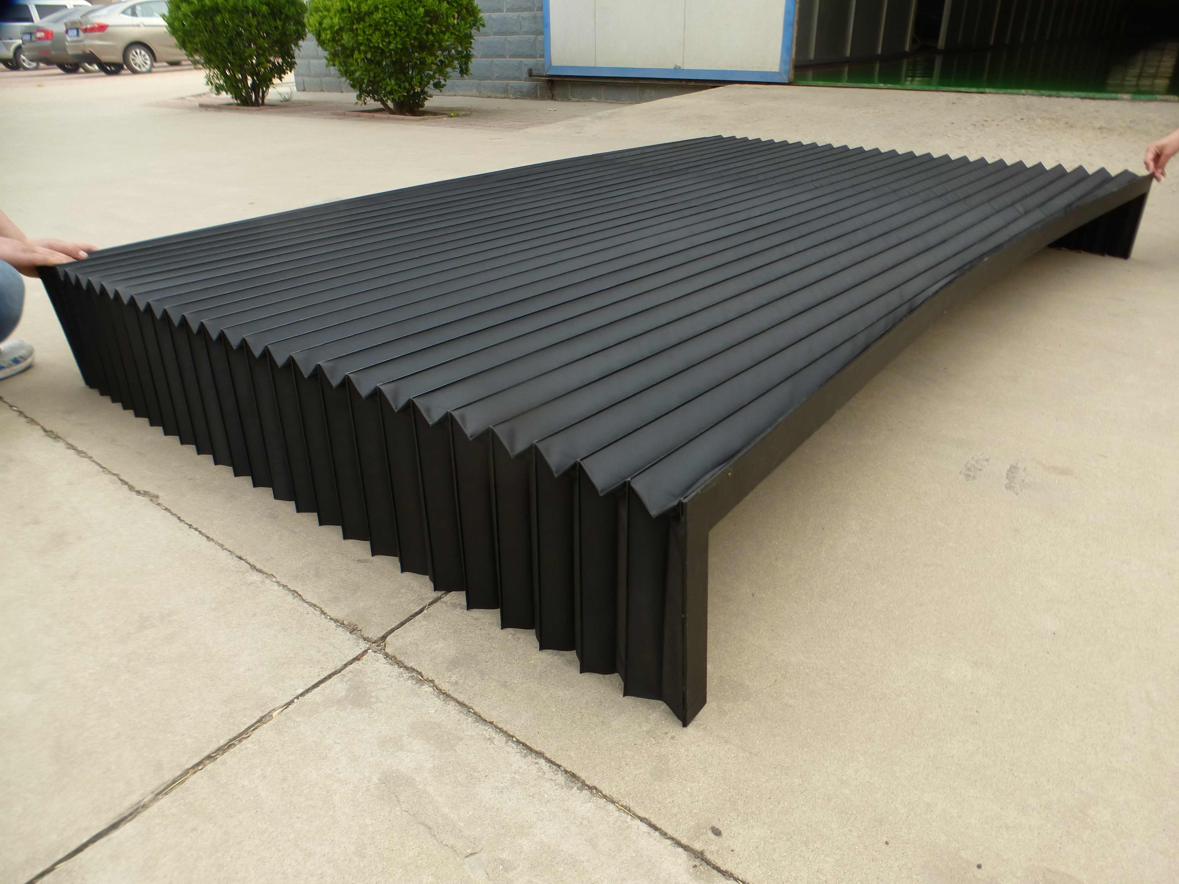 柔性风琴防护罩用尼龙革、塑料织物或合成橡胶折叠、缝制或热压而成,风琴防护套内有PVC板材支撑,可耐热、耐油、耐冷却液、瞬间接触温度可达1000℃,采用绝缘支撑板。行程速度可达100m/min,根据用户要求、风琴防护套除生产平面风箱式上可带不锈钢片,也可生产圆形、六角形、八角形等。