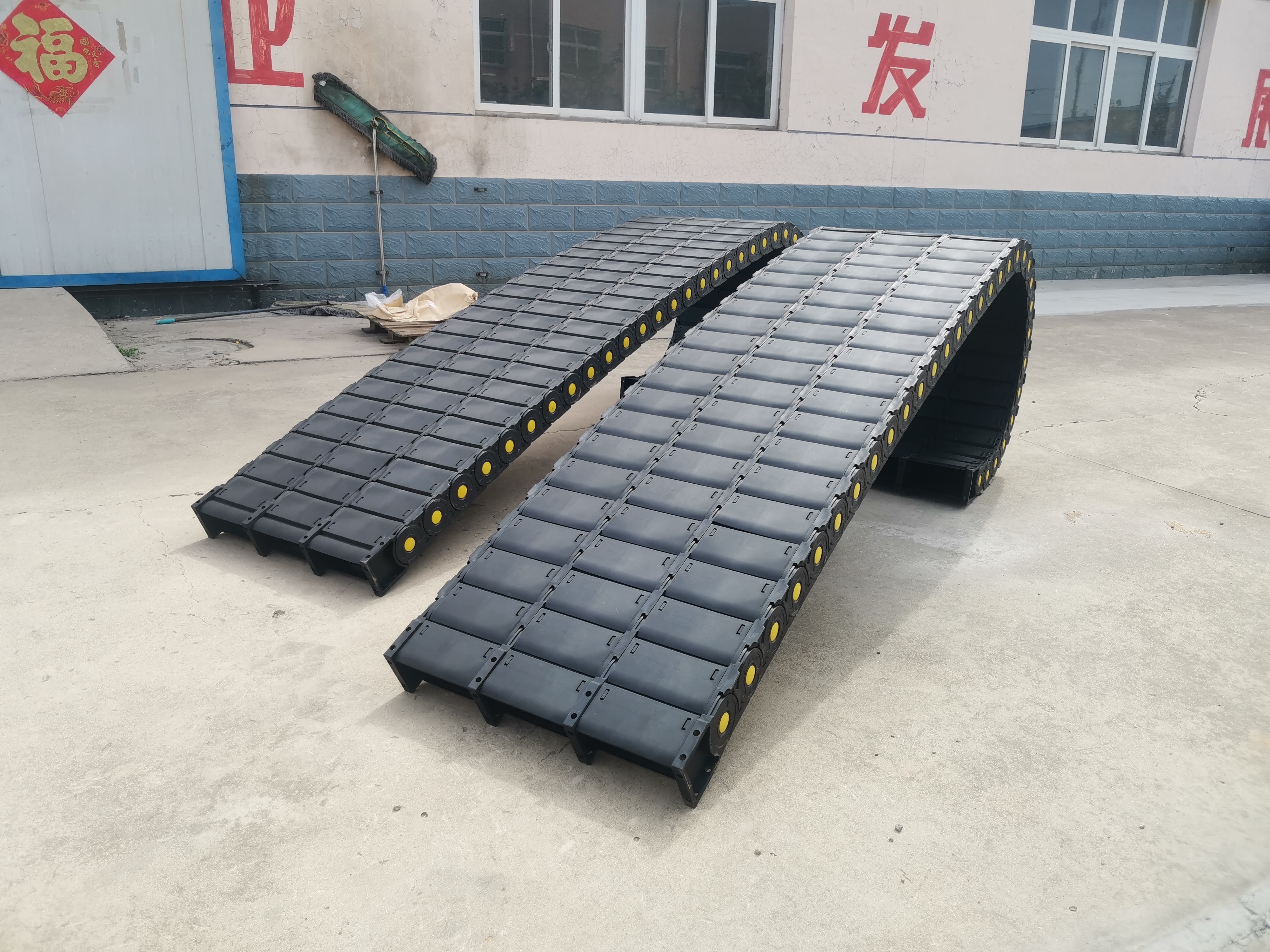 产品介绍:耐磨承重阻燃拖链是一款采用高质量玻璃纤维增强尼龙材料注塑而成的产品。其设计独特,外形似坦克链,由多个灵活自如的单元链节组成,保证了在承重、耐磨、超长使用等方面的卓越性能。这款拖链具有优异的阻燃性能,大大提高了使用的安泉性。